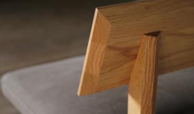 背と脚にはデザインカットを施し、それによって現れる陰影がウォールナット等の無垢材の美しさをより際立たせます。また座り心地を重視したクッションはダイニングに贅沢な寛ぎを与えてくれます。