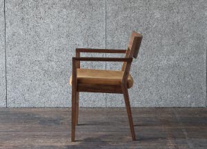 ワイドタイプのダイニングチェアで、直線的なアームや