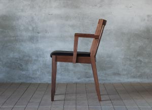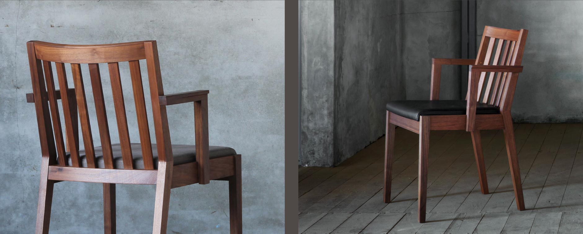 凛とした空気感を漂わせるダイニングチェア。洗練されたシンプルなデザイン。フォルムの美しさもさることながら、座ってみると心地良い。背中を包み込むような背面形状や角度など職人とデザイナーのこだわりが詰まったチェアです。
