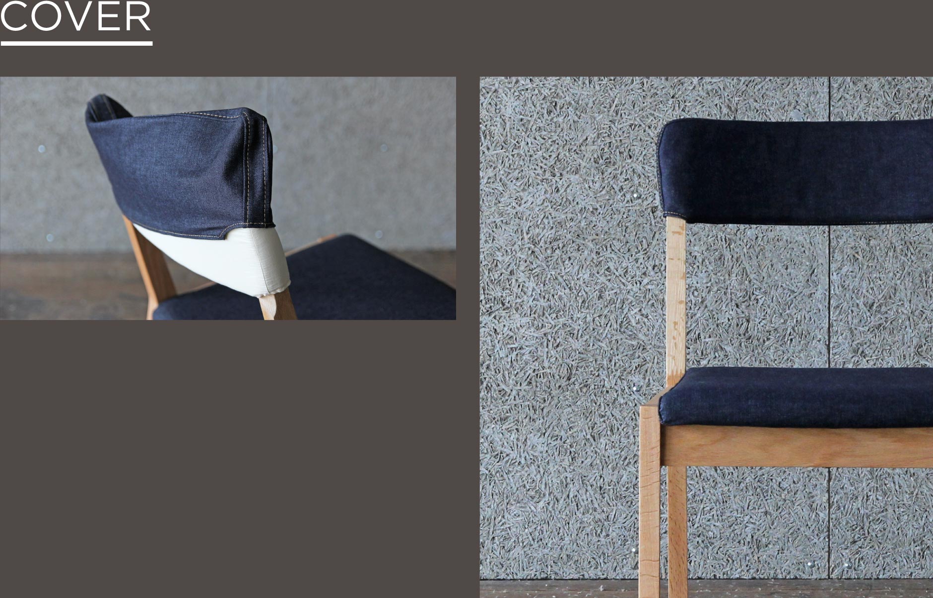 ファブリックの場合カバーリング仕様となっておりますので、汚れた場合洗えて安心です。替えカバーの販売もしておりますので、同じチェアでも違った表情を魅せお部屋の雰囲気を変え、新鮮な気持ちでお使い頂けます。