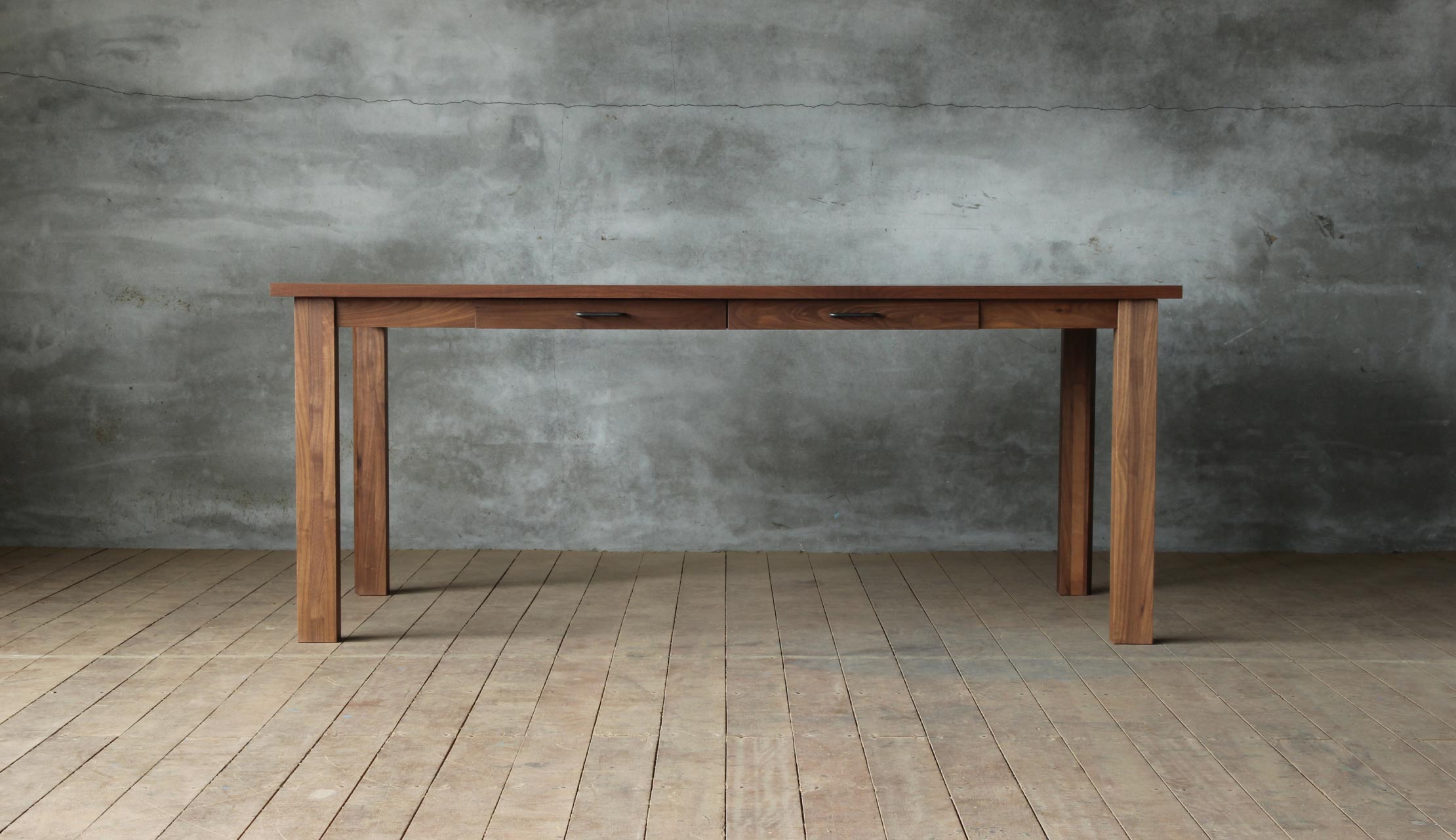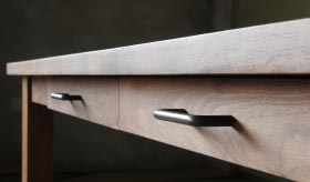 アクセントとしてもかっこよく、ちょっとした収納にも便利な引出。お客様のライフスタイルやお部屋の雰囲気に合わせて引出の有無をお選びいただけます。なお、引出のサイズや数はテーブルのサイズに合わせて作成しておりますので、お選びいただけません。ご了承くださいませ。