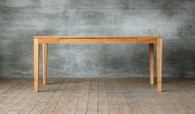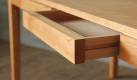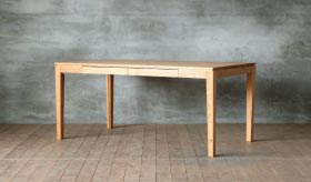 凛としたスタイリッシュなフォルムのダイニングテーブル。天板・幕板・脚はもちろんのこと引出し部分にまで無垢材を使用した贅沢な造り。引出しタイプの仕様では食器やテーブル周りの細かい小物、筆記用具などを収納することができる為、生活感の無いダイニングシーンを実現します。