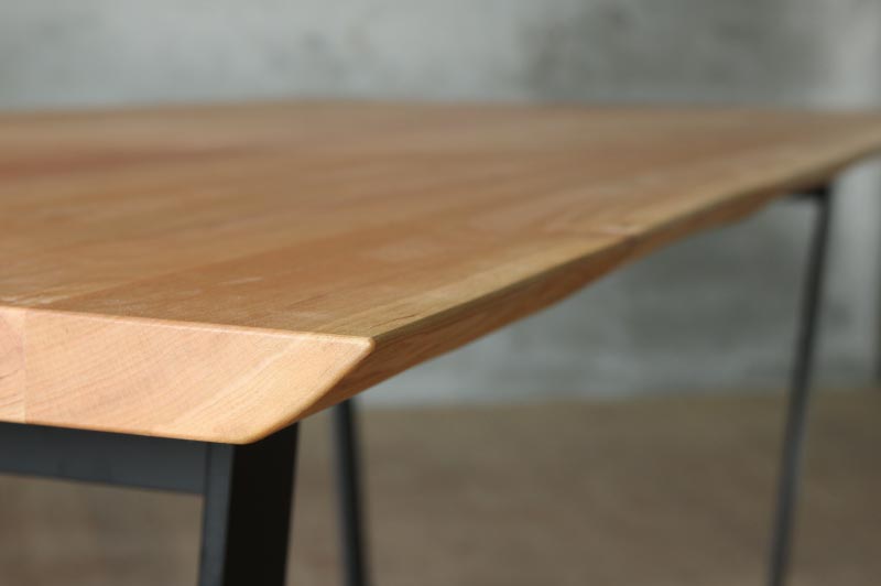 一枚板風の耳付きテーブル