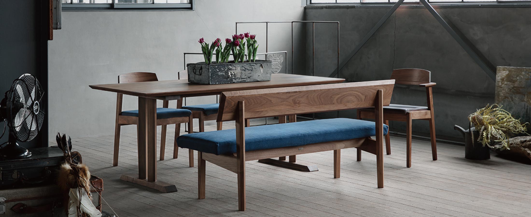 脚を黒で引き締めることで天板がより強調されます。『天然木とスチール』異素材を組み合わせることで、より審美性を追求したダイニングテーブルをお作りできます。