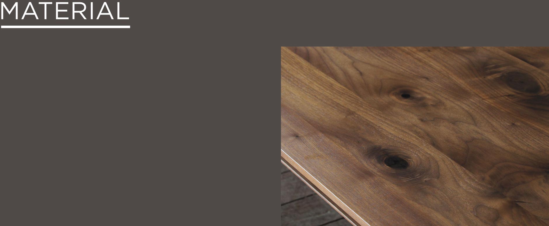 SOLIDでは木材に精通するプロの職人が厳選した無垢材のみを使用しており、ウォールナット、ブラックチェリー、レッドオークの3材種よりお選び頂けますので、お客様のお好みに合わせてオーダーが可能です。