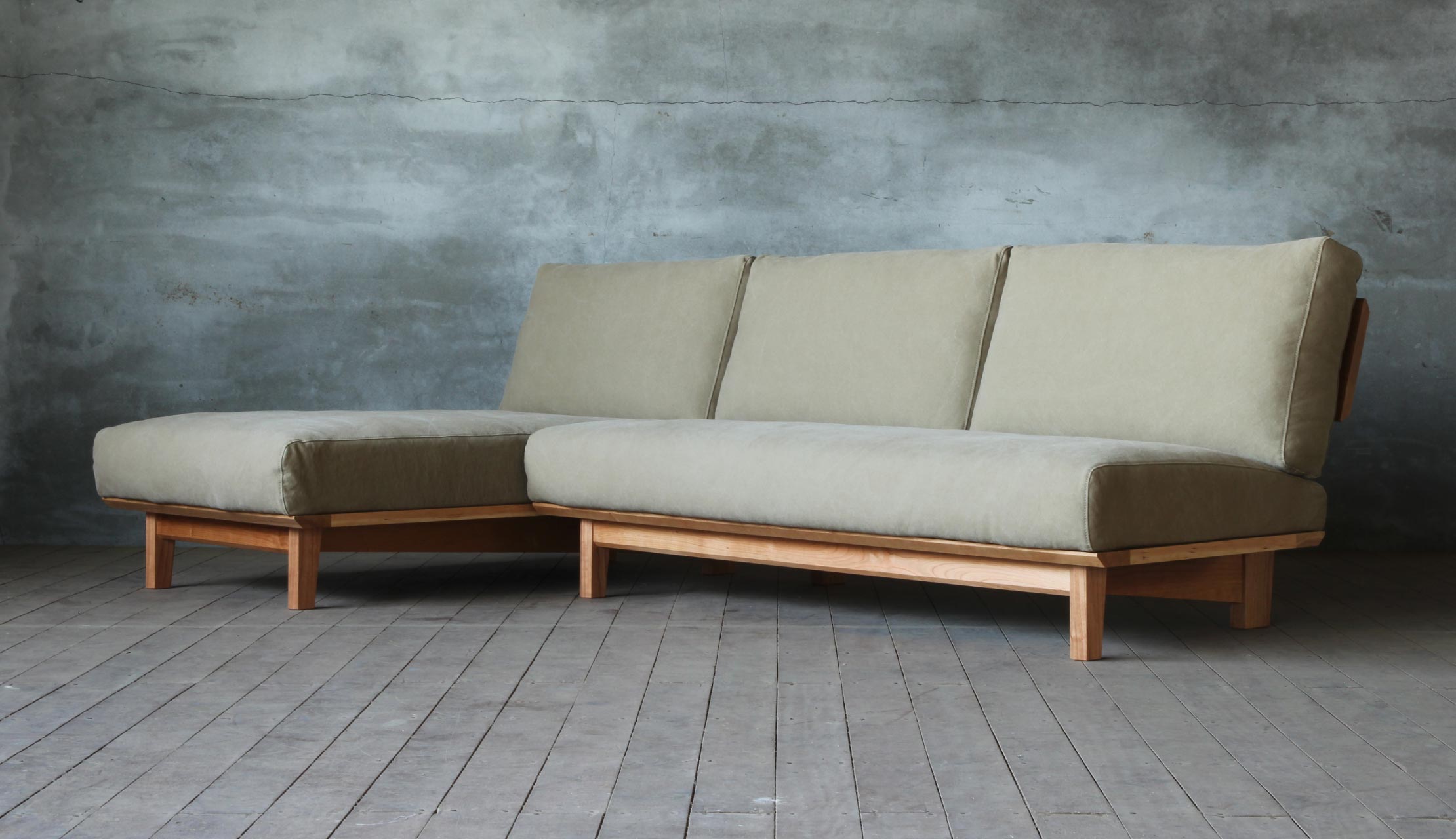 お客様の体格や身長、お好みに合わせて2サイズのタイプからオーダーが可能です。フィット感のある座り心地の奥行き850㎜と、ゆったりとした座り心地の奥行き950㎜よりお選び頂けますので、実際にショップにて座り比べてみてください。
