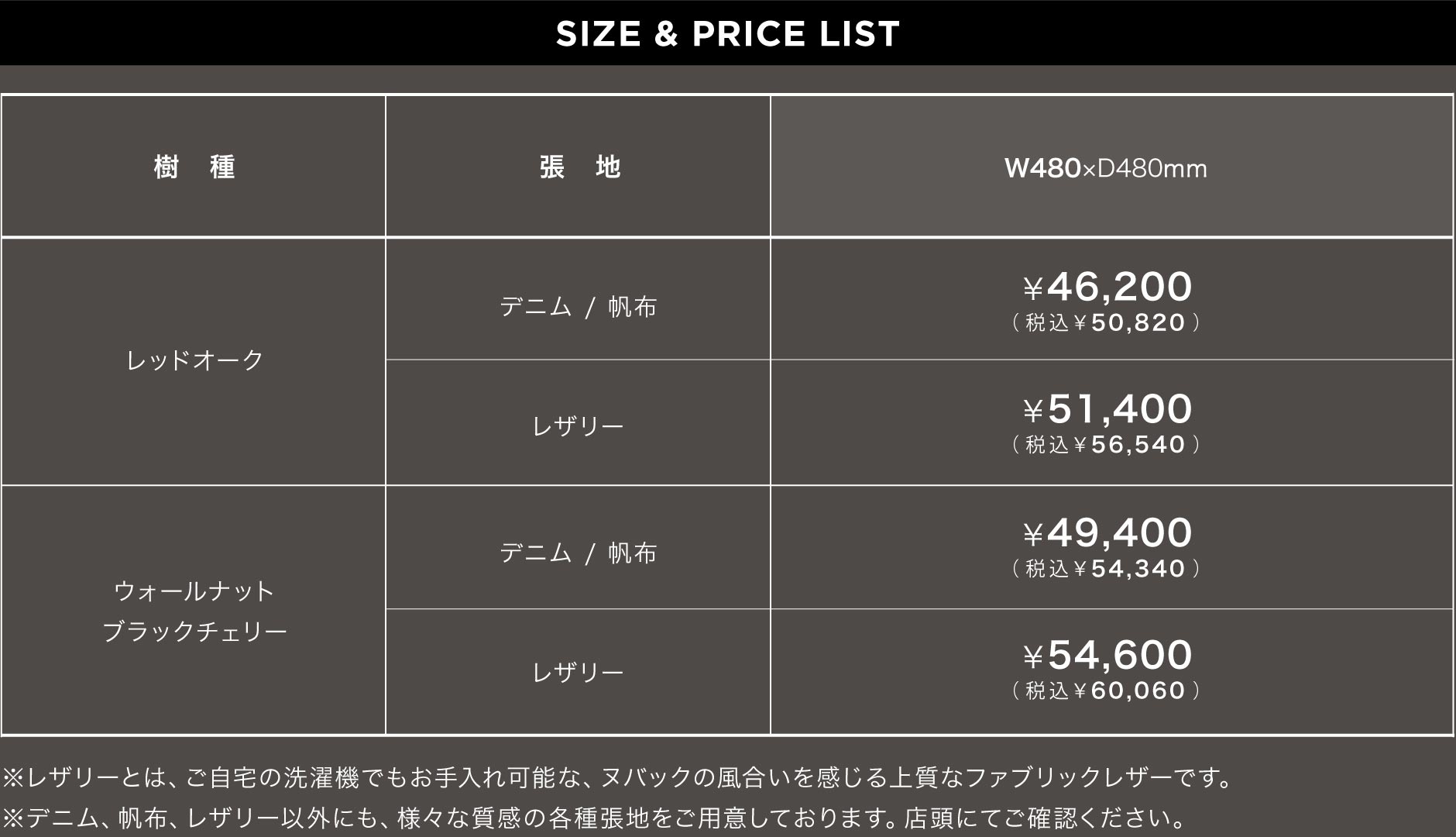 厳選した3材種よりお選び頂けます。