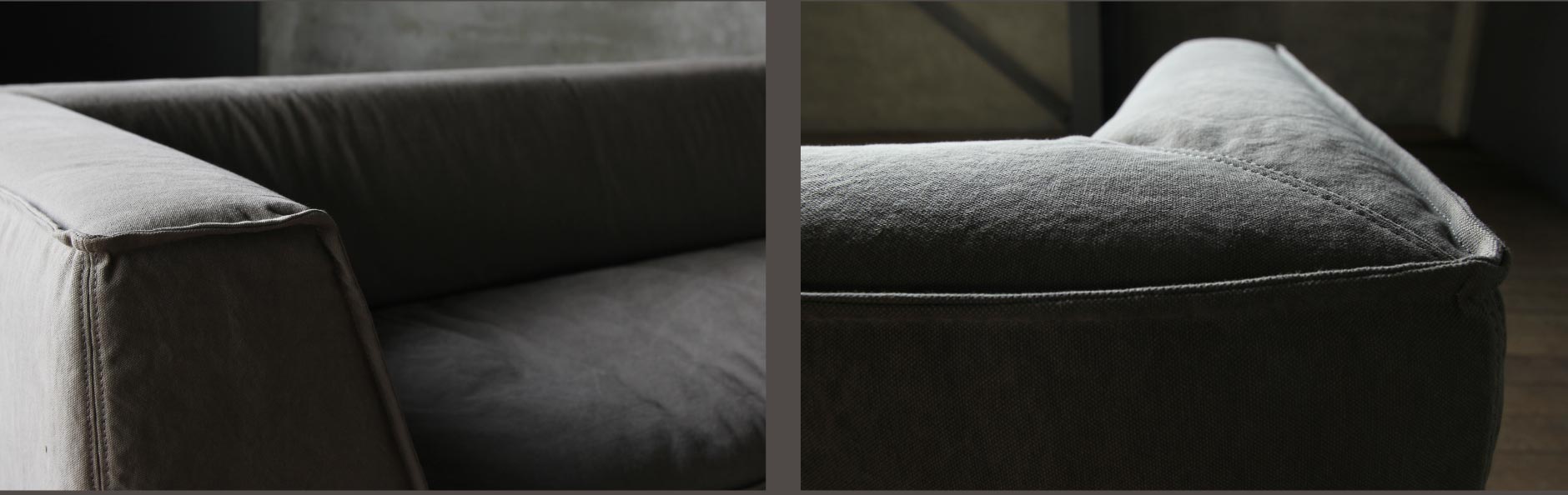 ソファの輪郭に耳と呼ばれるアウトステッチを施すことにより、デザイン上のアクセントとなり品のある仕上がりを実現しています。足元の木部は樹種をお選びすることができ、コーディネートも楽しむことができます。