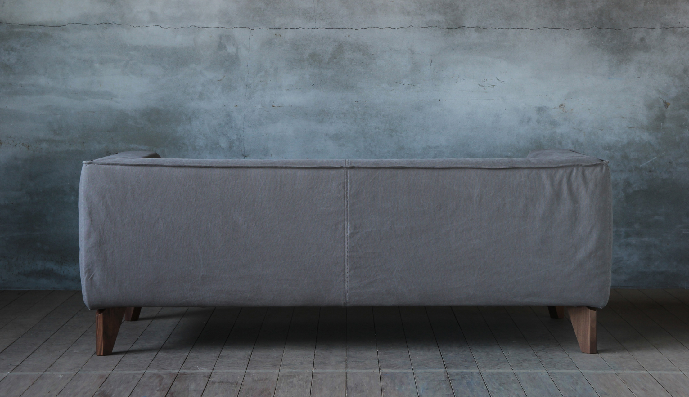 SOLIDで唯一の総張り本格ソファ。骨組みとなる木部も無垢材をふんだんに使用することにより、強度、耐久性に優れた贅沢な一品。両側に肘置きがあることで重厚感のある見た目の反面、ローバックで圧迫感がなく、すっきりとした印象のソファです。