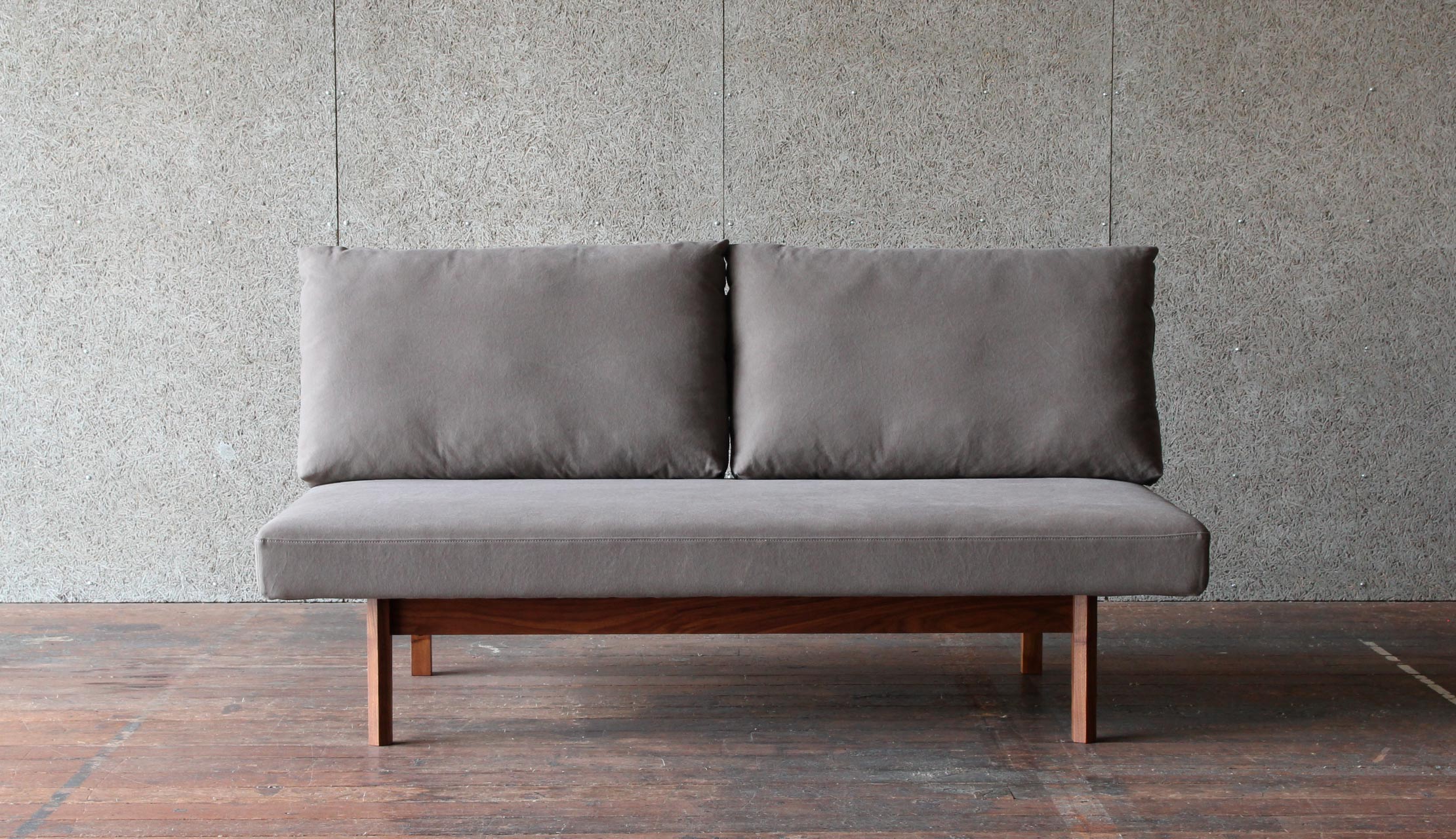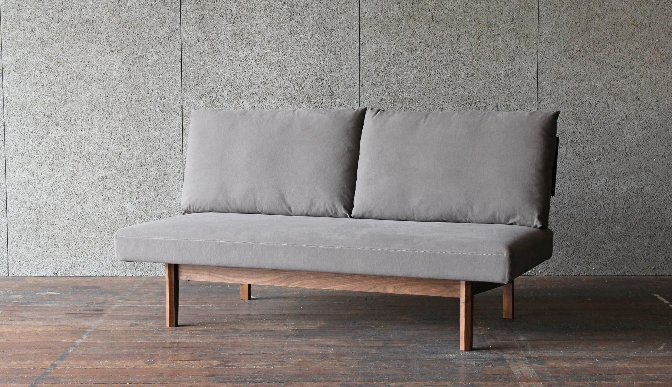 シンプルでスッキリとしたアームレスタイプのソファ。