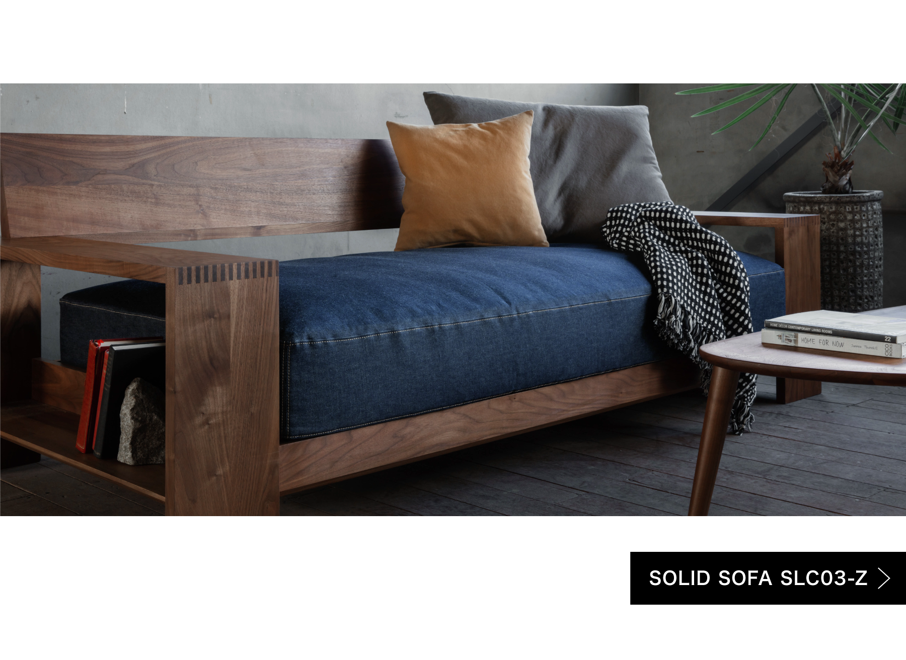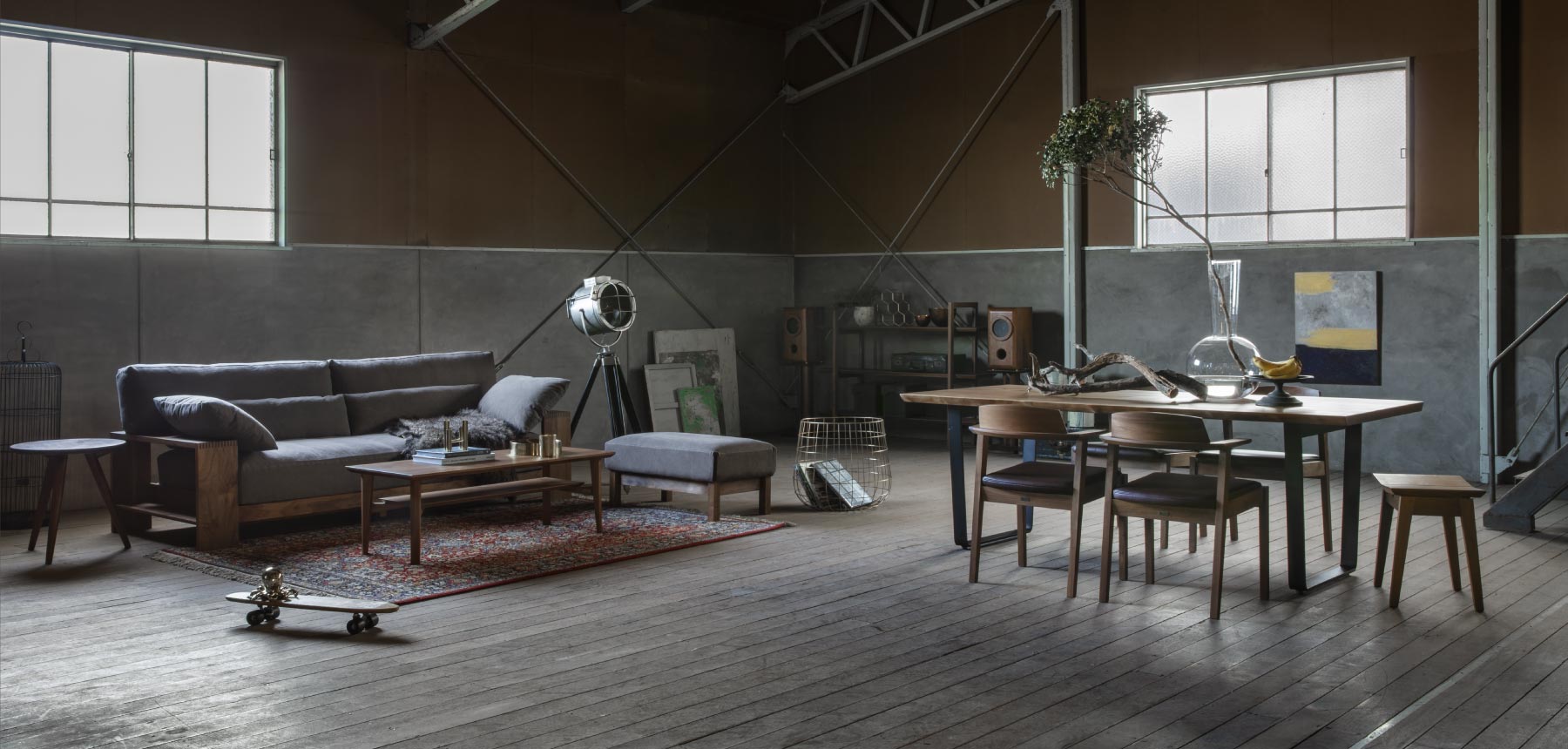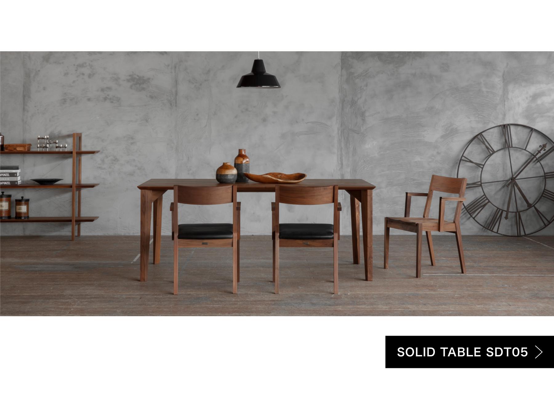 インダストリアルモダンな世界観のSOLIDの家具とウォールナットとの相性は抜群です。